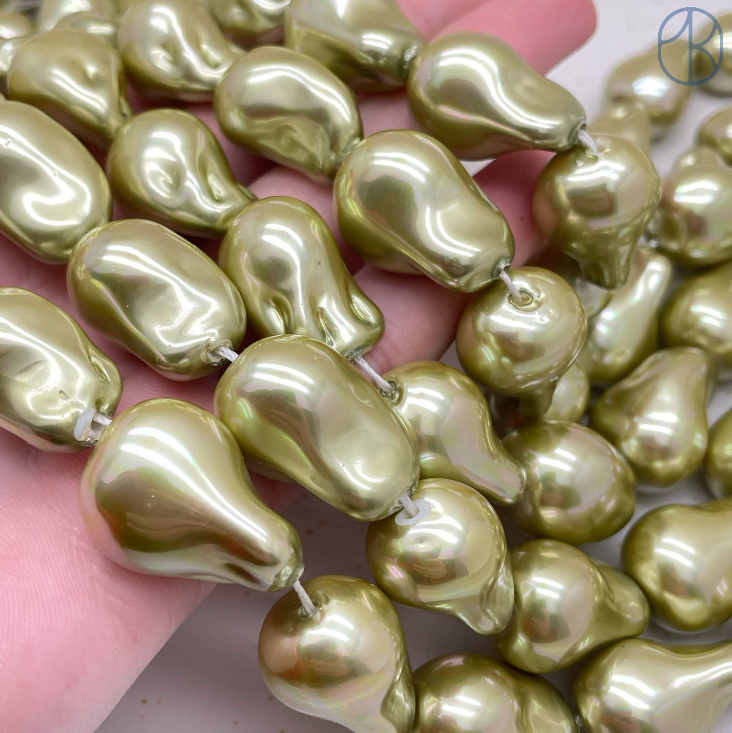 Жемчуг Майорка Барокко цвет светло-зеленый 22х15 мм