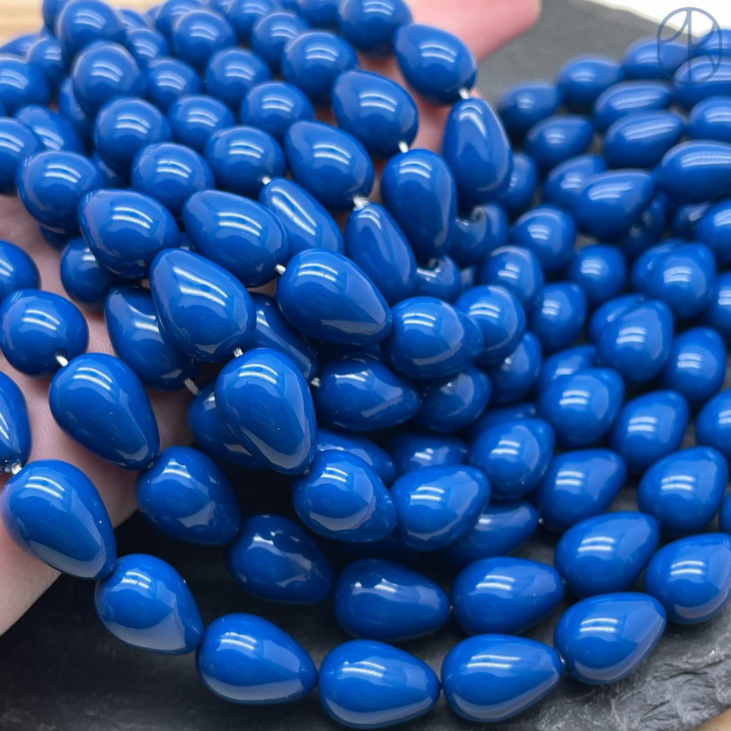 Жемчуг Майорка капля, цвет синий 12х10 мм
