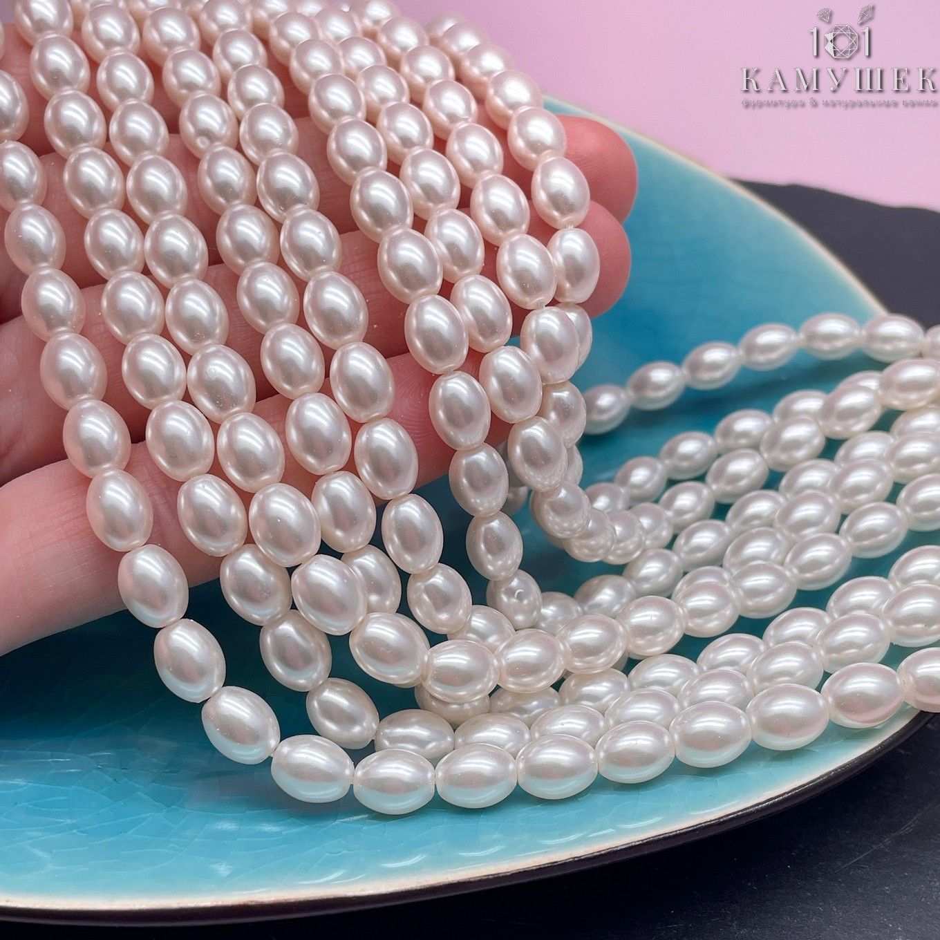 Жемчуг Майорка пудровая рис 6х8 мм