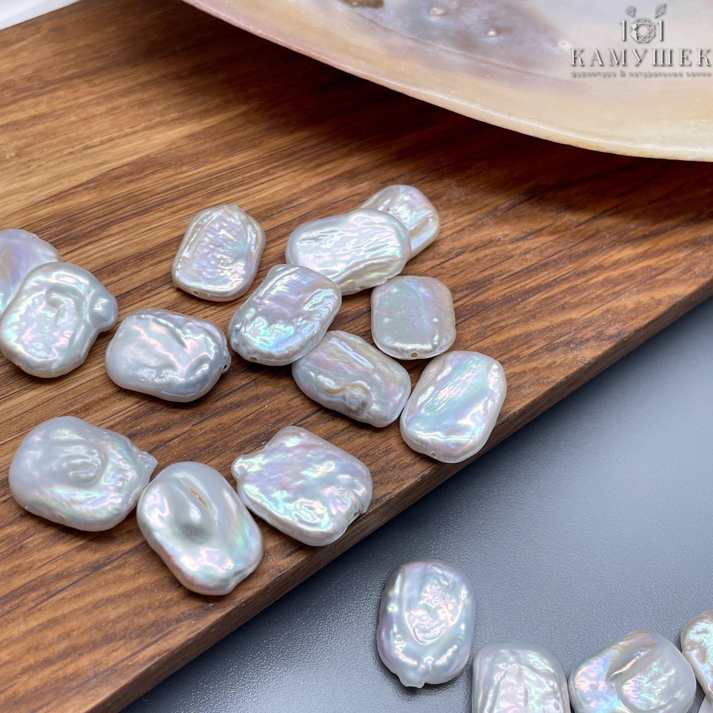 Жемчуг Прямоугольник белый штучно ~ (16-18)х(12-14)мм